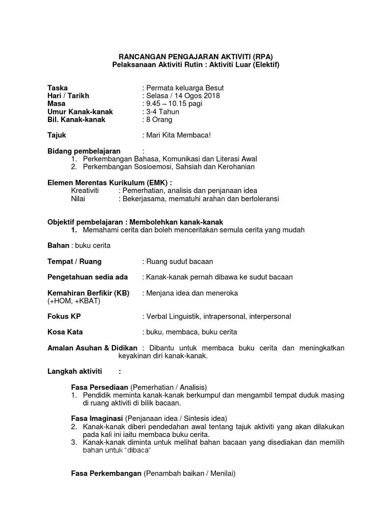Rpa Perkembangan Sahsiah Sosioemosi Dan Kerohanian Bayi / Rancangan Pelaksanaan Aktiviti Pdf